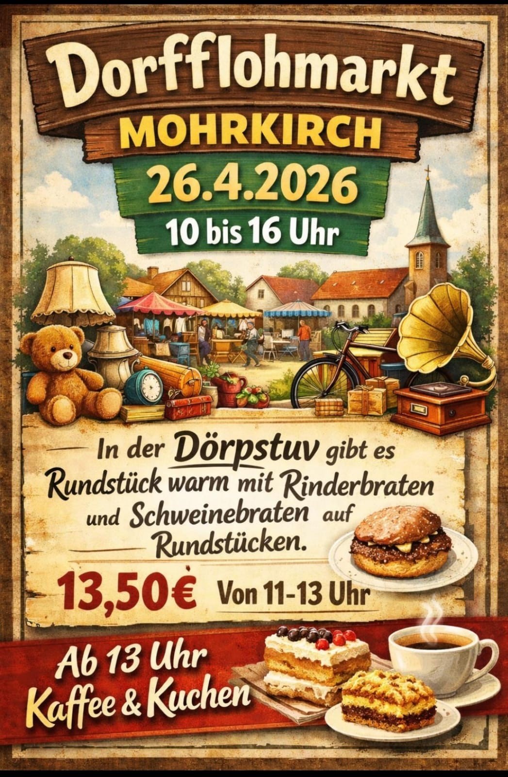 Wir bekennen uns zu dieser eindrucksvollen Mohrkircher Tradition und wollen mit unserer Dörpstuv ein Stück der Tradition erhalten. Dies vornehmlich bei den Speisen und Getränken. Daher werden bei uns nicht nur die Speisen frisch zubereitet, wir bemühen uns auch so viele Produkte, wie möglich, aus der näheren Region zu beziehen.